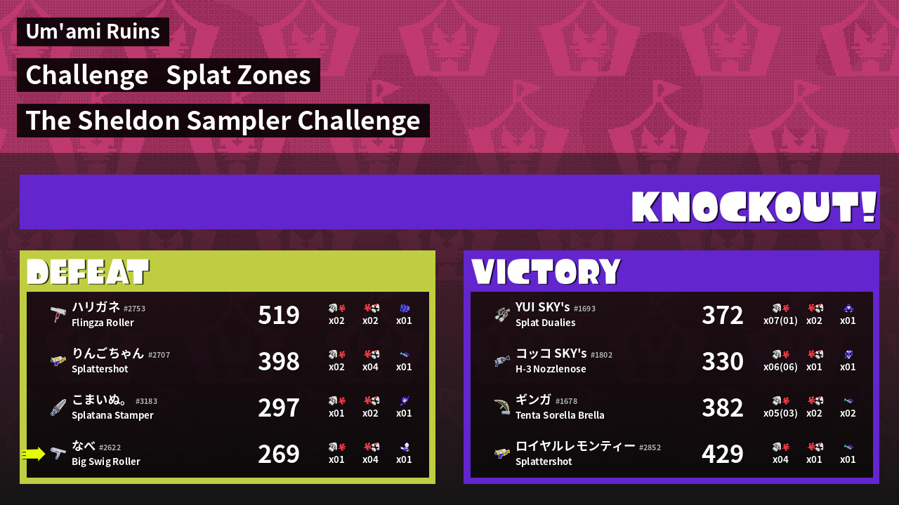 | Weapon | Big Swig Roller ( Splash Wall / Ink Vac) | ||