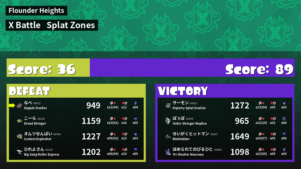 | Medals | #1 Overall Splatter #1 Splat Zone Guard #1 Enemy Splatter | ||
