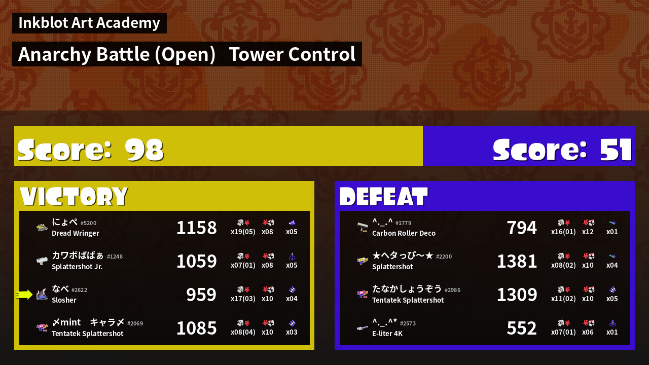 | Mode | Tower Control - Anarchy Battle (Open) | ||