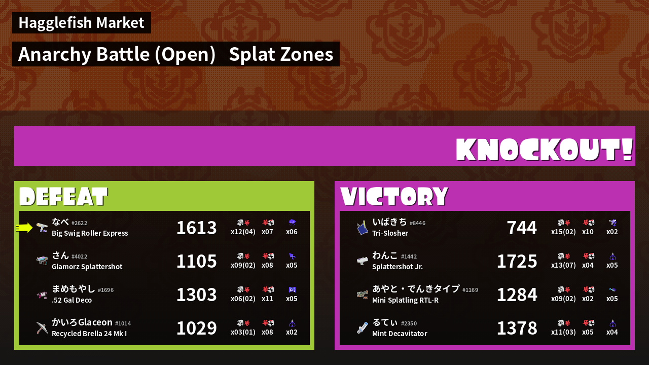| Mode | Splat Zones - Anarchy Battle (Open) |