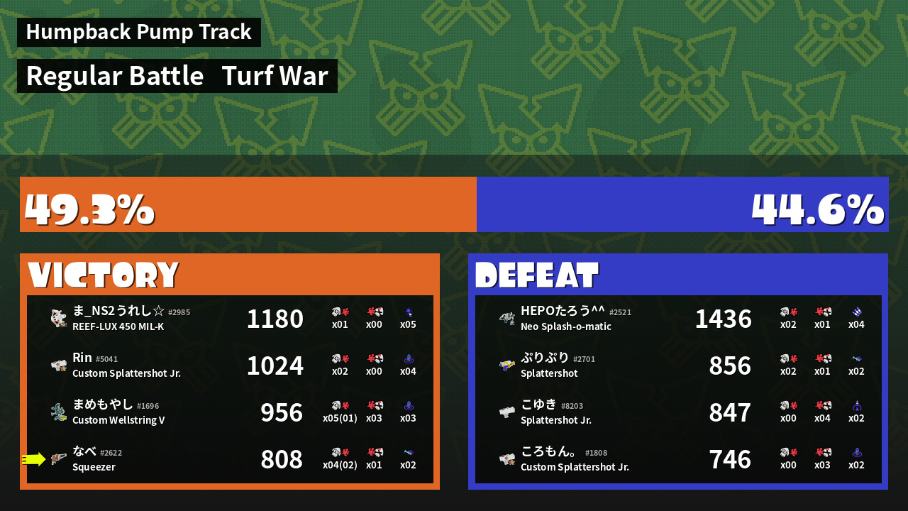 | Medals | #1 Splat Assister #1 Ground Traveler #1 Damage Taker |
