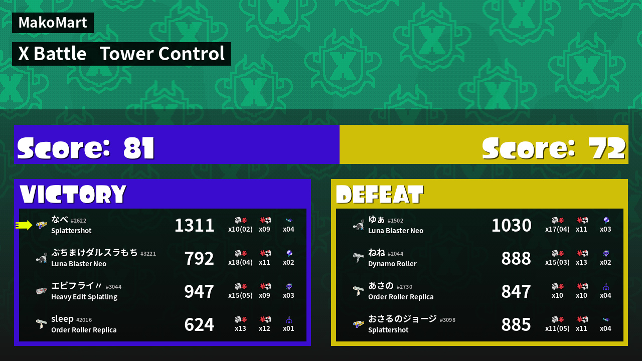 | Weapon | Splattershot ( Suction Bomb / Trizooka) | ||