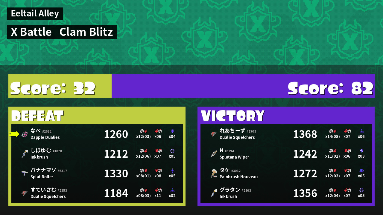 | Medals | #1 Overall Splatter #1 Clam Carrier #1 Super Jump Spot | ||