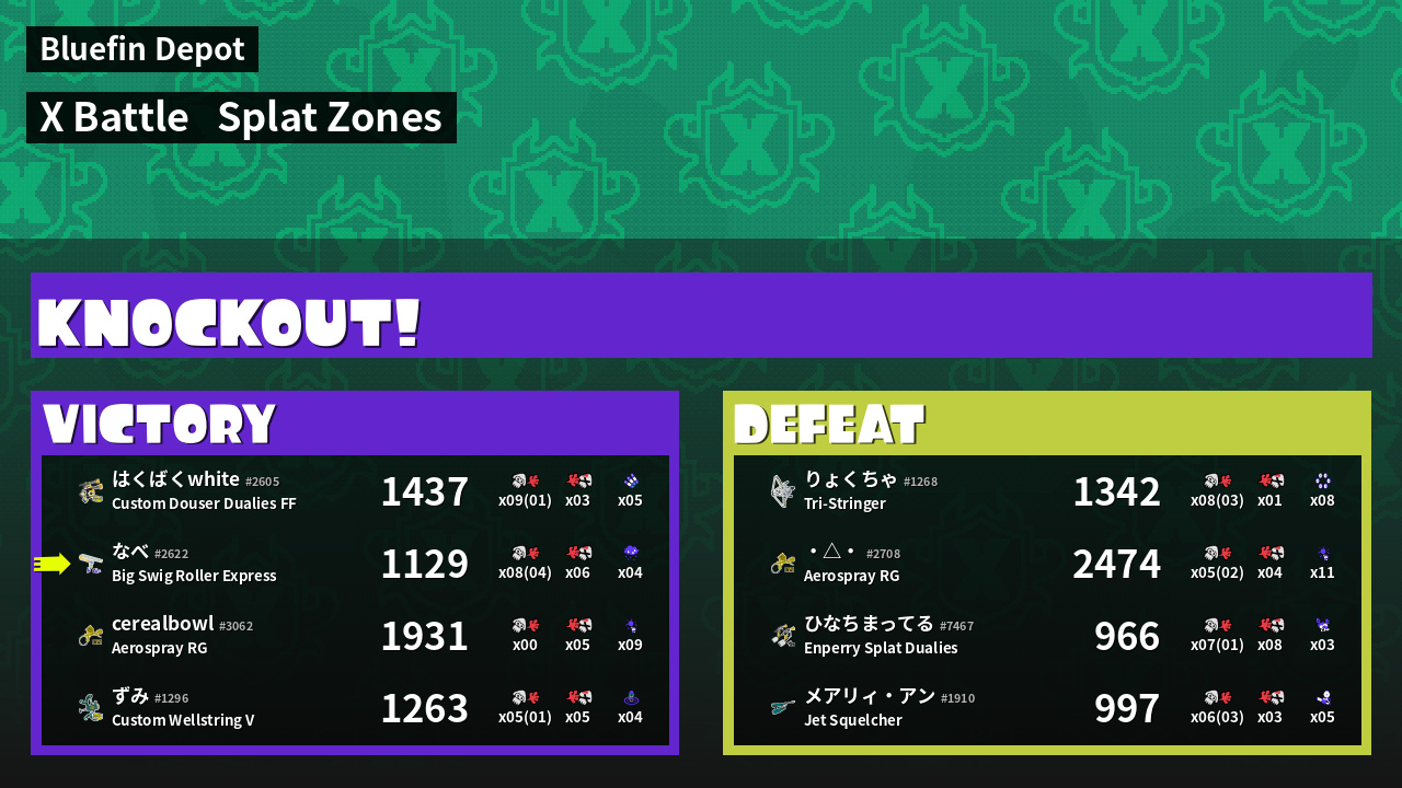 | Medals | #1 Splat Zone Guard #1 Splat Assister First Splat! | ||