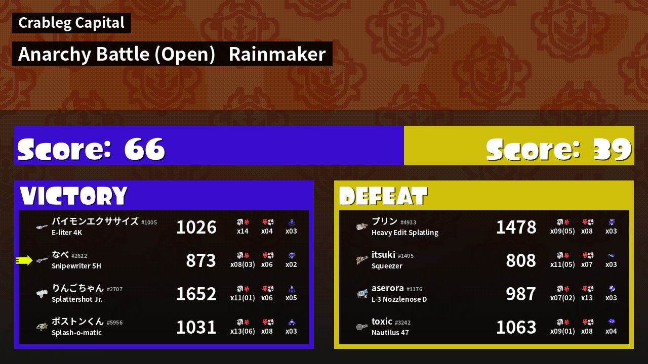 | Mode | Rainmaker - Anarchy Battle (Open) | ||