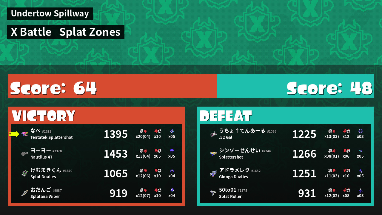 | Medals | #1 Overall Splatter #1 Popular Target #1 Super Jump Spot | ||