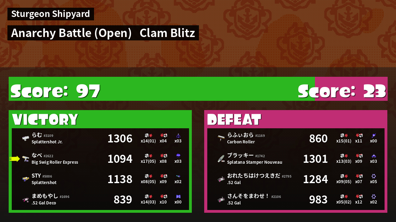 | Mode | Clam Blitz - Anarchy Battle (Open) | ||