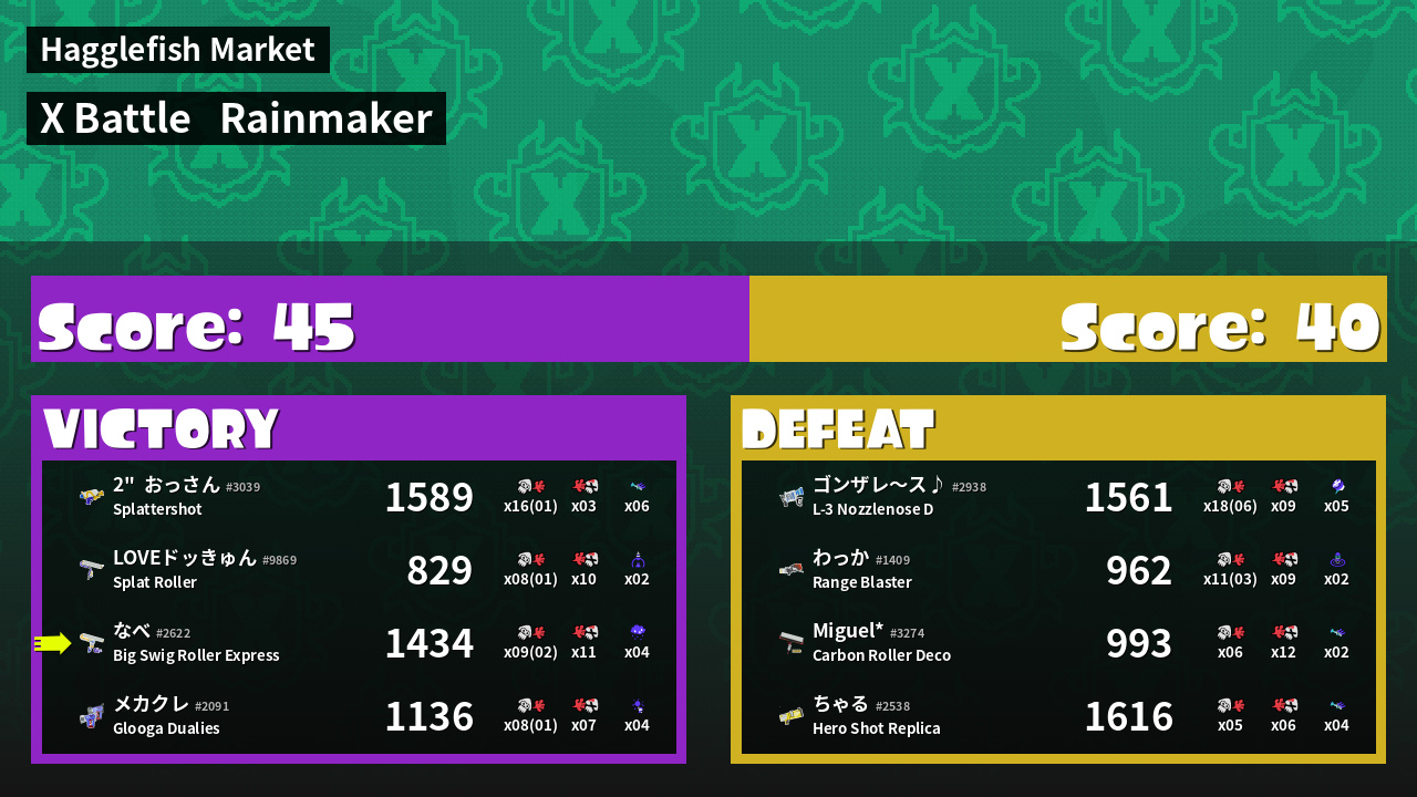 | Medals | #1 Splat Assister #1 Rainmaker Stopper #1 Ground Traveler | ||
