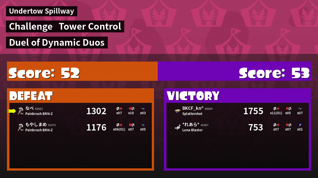 | Medals | #1 Overall Splatter #1 Score Booster Record-Score Setter | ||