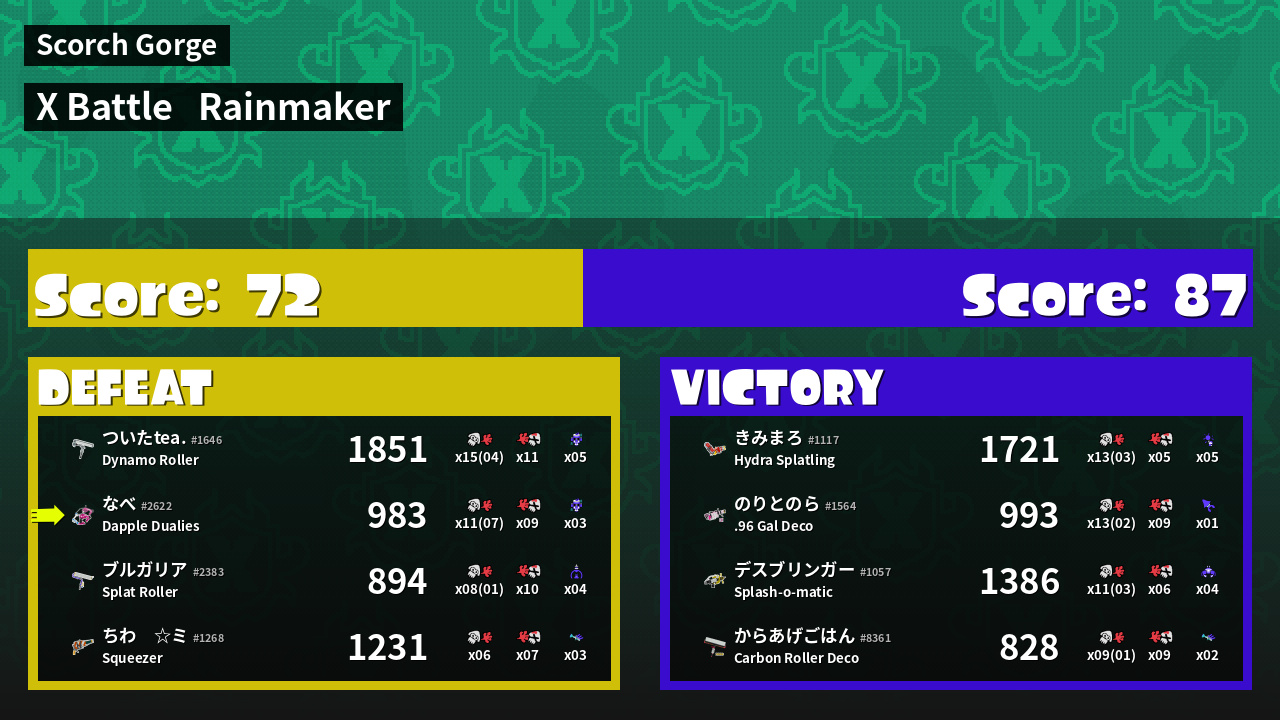 | Medals | Record-Score Setter #1 Splat Assister #1 Rainmaker Stopper | ||