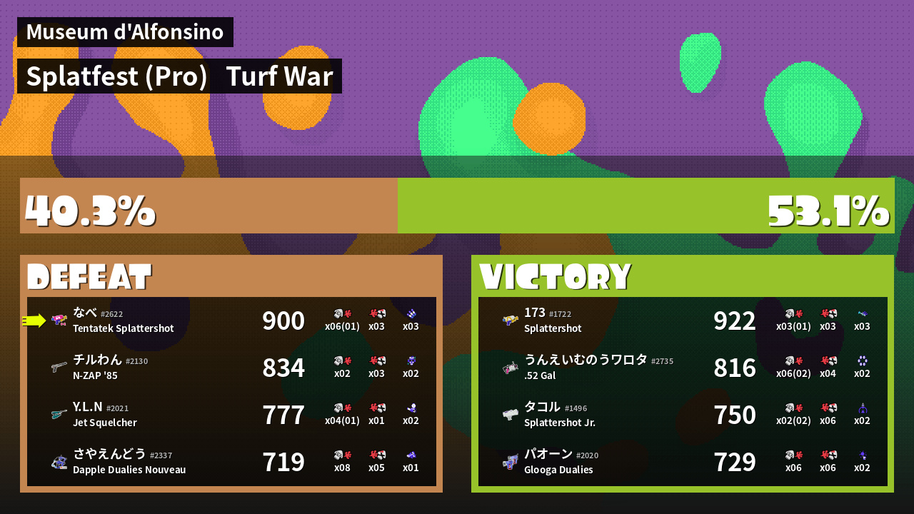 | Medals | #1 Turf Inker #1 Super Jump Spot #1 Splat Assister | ||