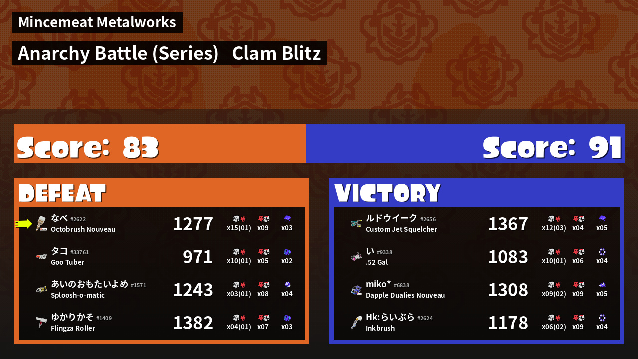 | Mode | Clam Blitz - Anarchy Battle (Series) | ||