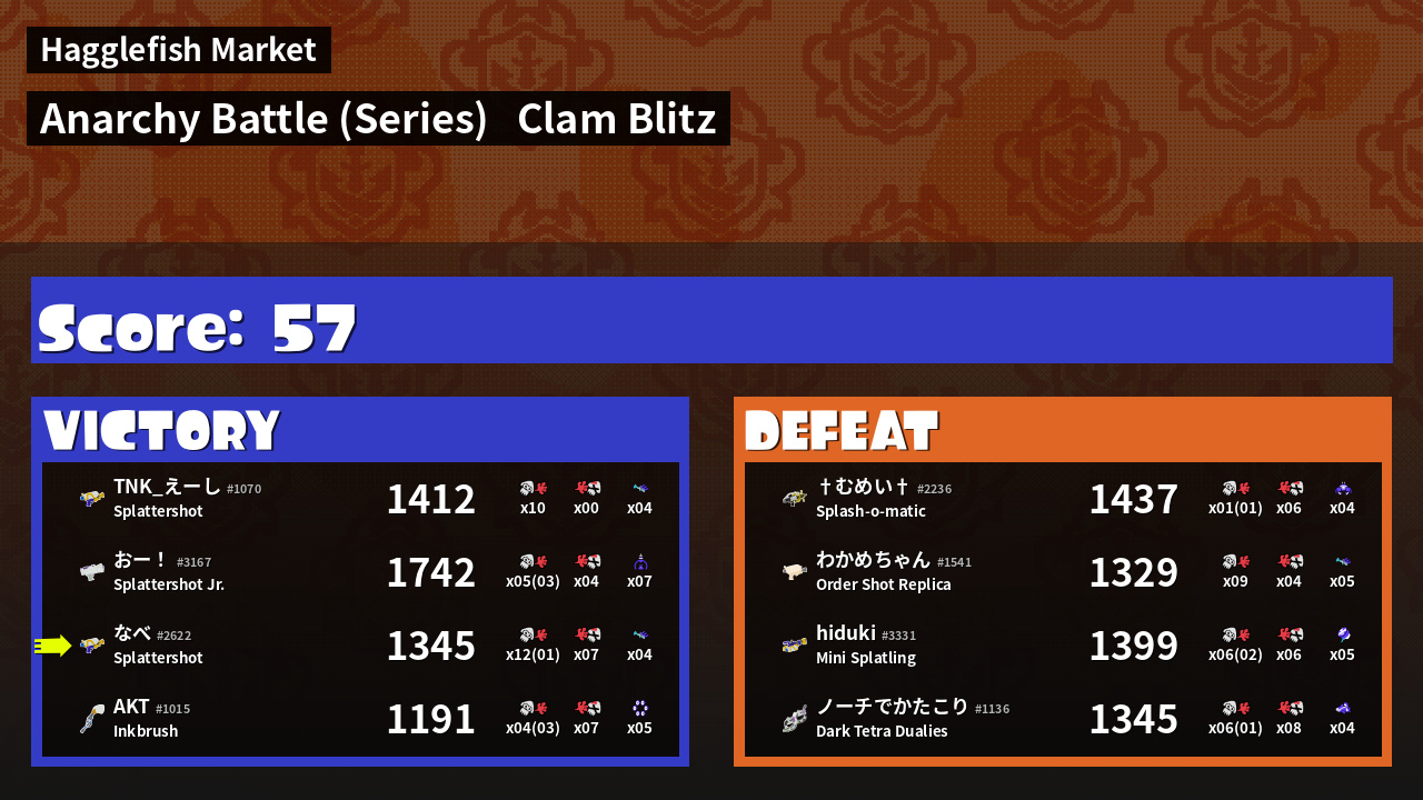 | Mode | Clam Blitz - Anarchy Battle (Series) | ||