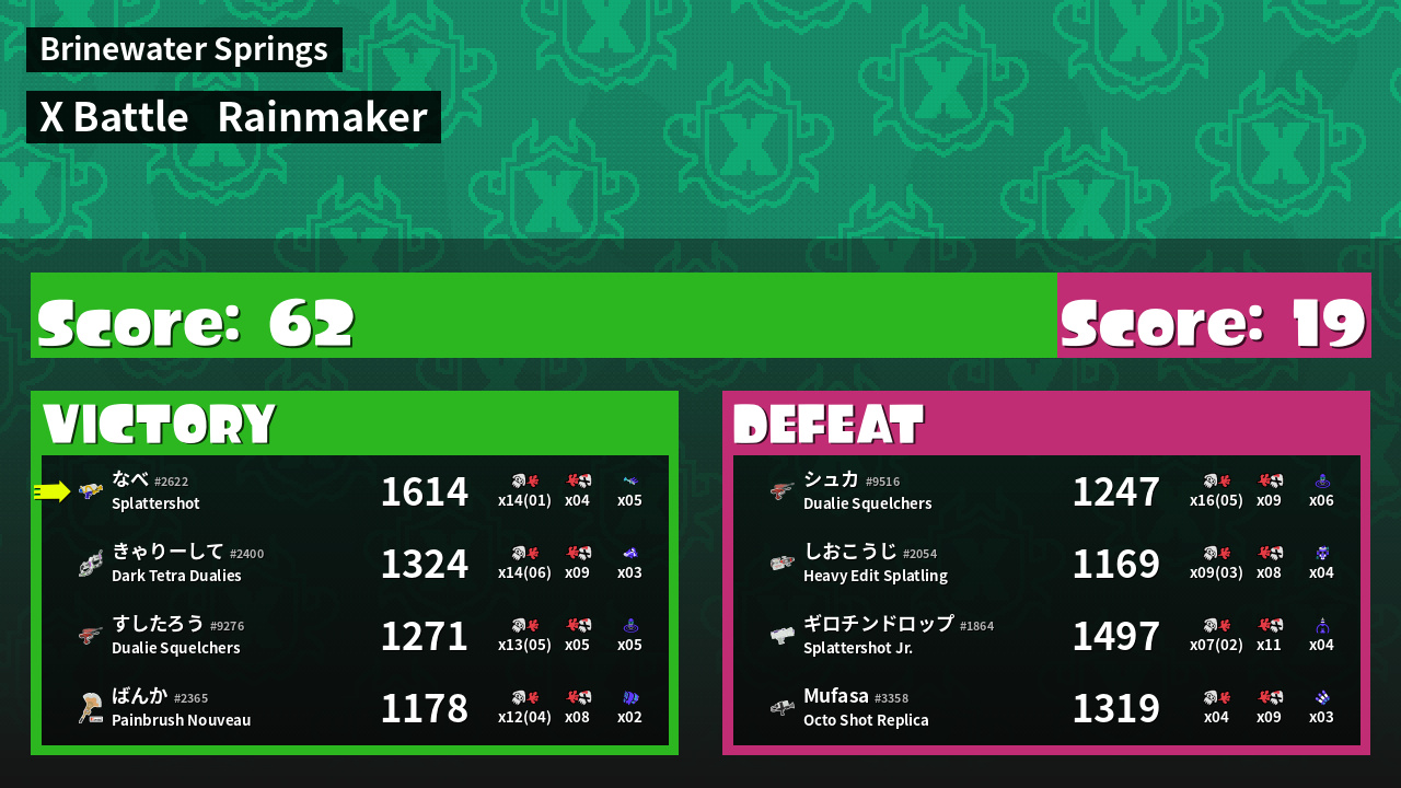 | Medals | #1 Overall Splatter #1 Score Booster #1 Turf Inker | ||