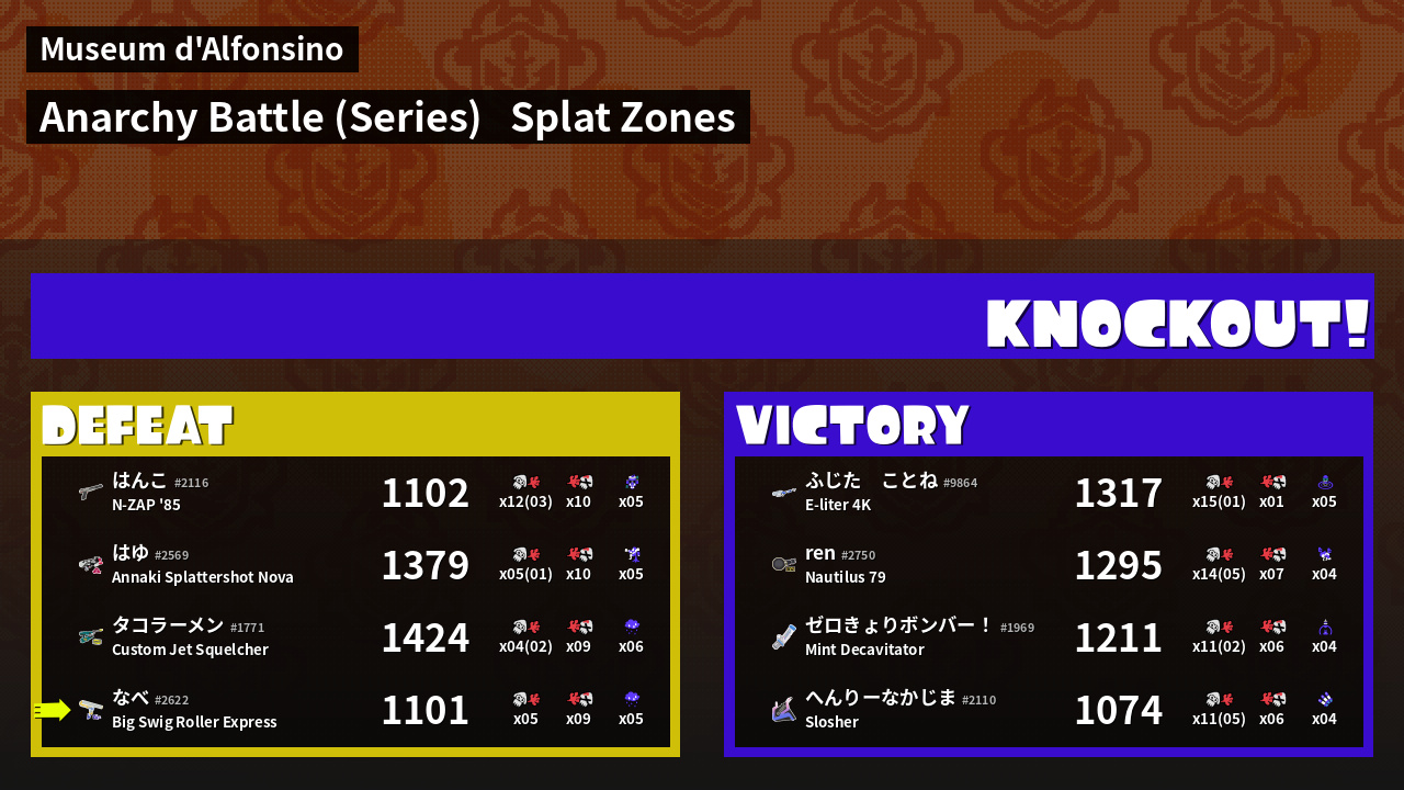 | Mode | Splat Zones - Anarchy Battle (Series) | ||
