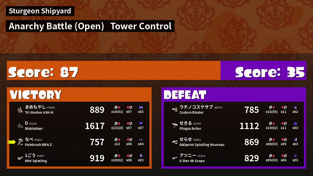 | Mode | Tower Control - Anarchy Battle (Open) |