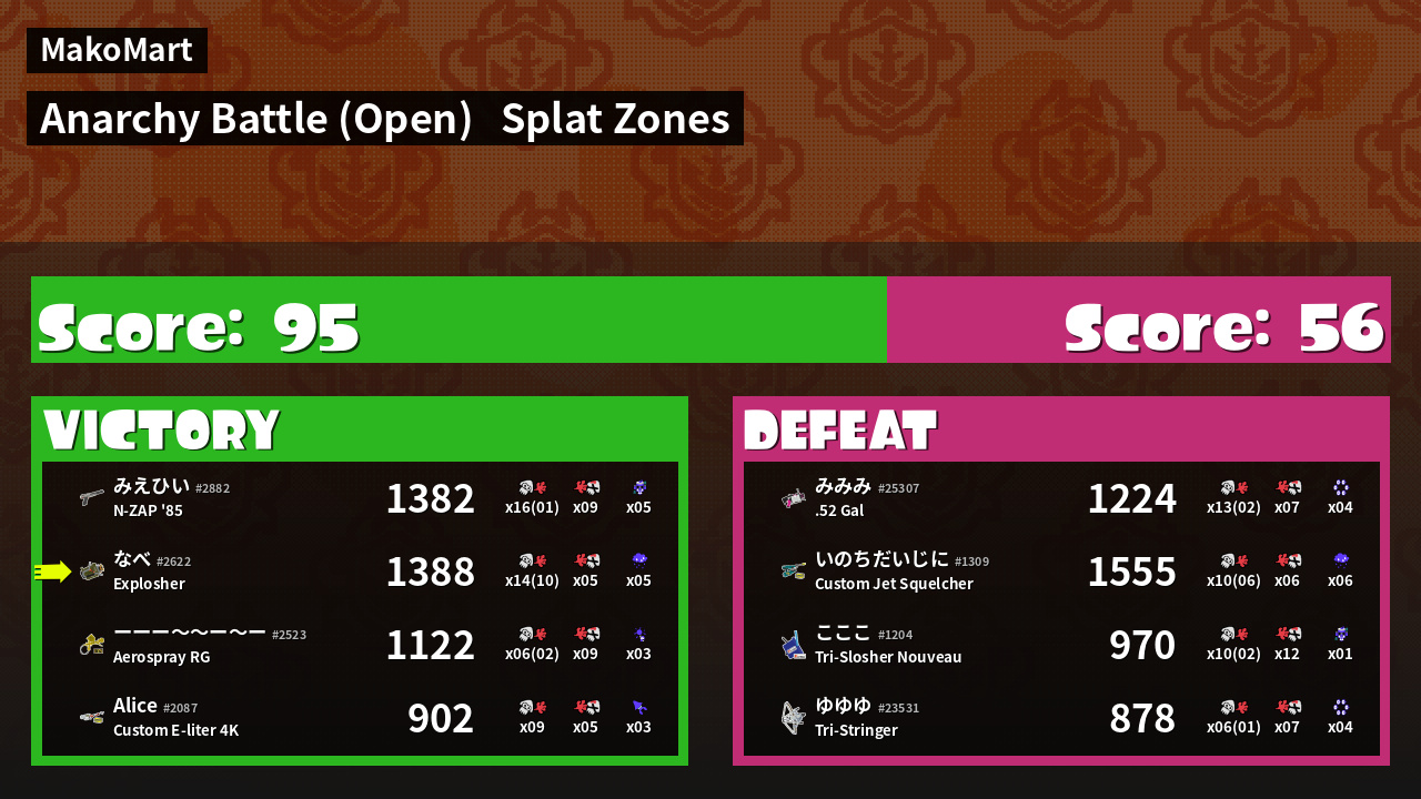 | Mode | Splat Zones - Anarchy Battle (Open) | ||
