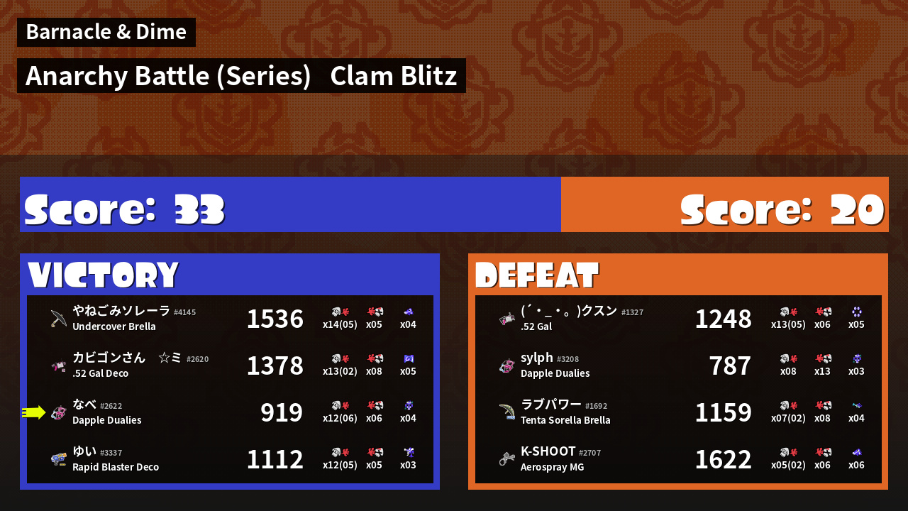 | Mode | Clam Blitz - Anarchy Battle (Series) | ||