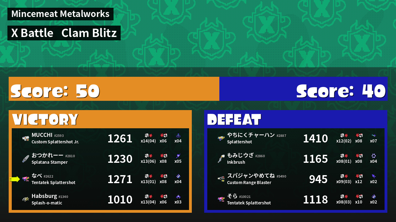 | Medals | #1 Turf Inker #1 Enemy Splatter #1 Clam Stopper | ||