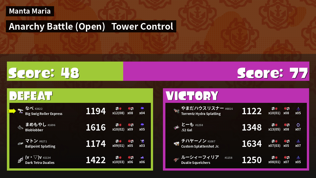 | Mode | Tower Control - Anarchy Battle (Open) |