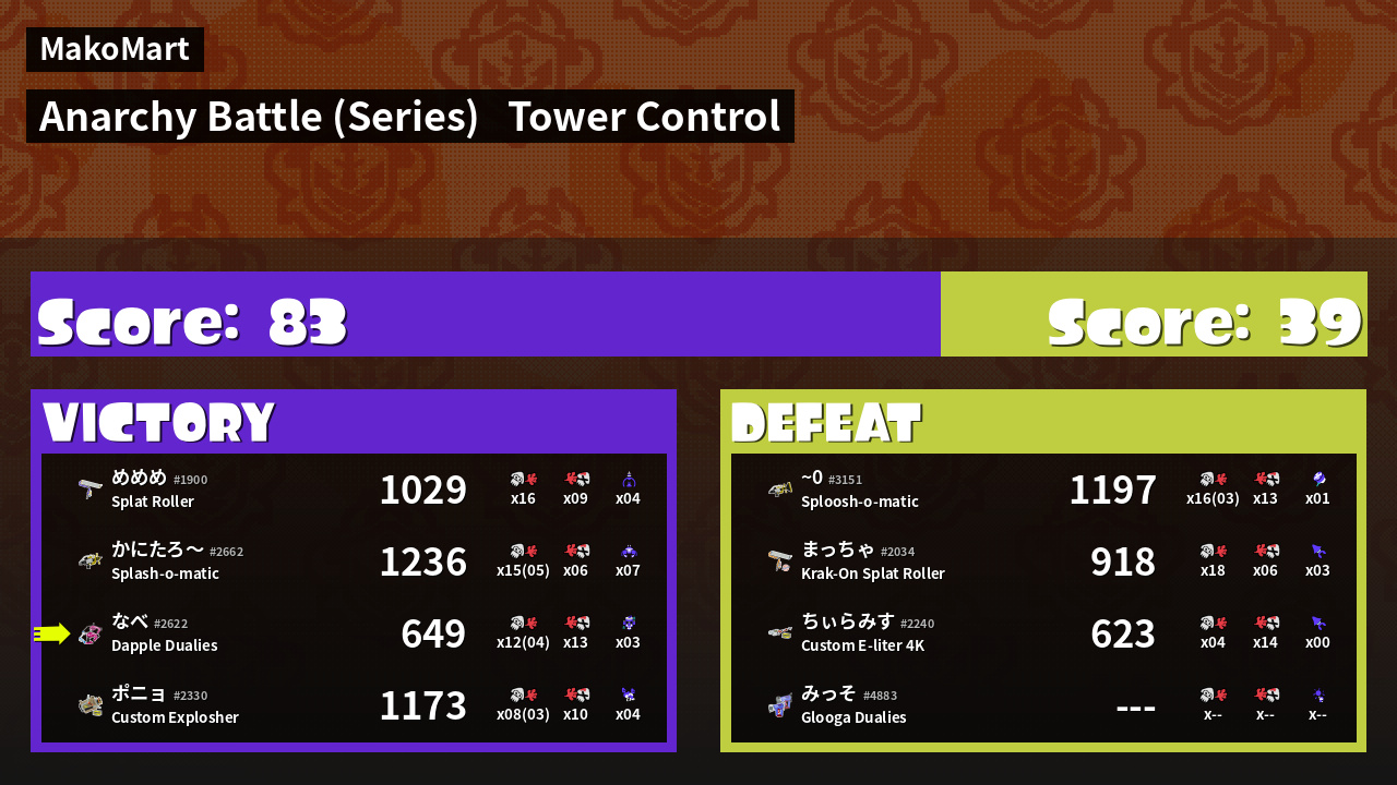 | Mode | Tower Control - Anarchy Battle (Series) | ||