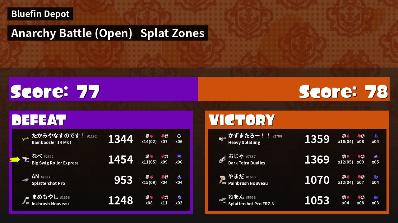 | Mode | Splat Zones - Anarchy Battle (Open) | ||