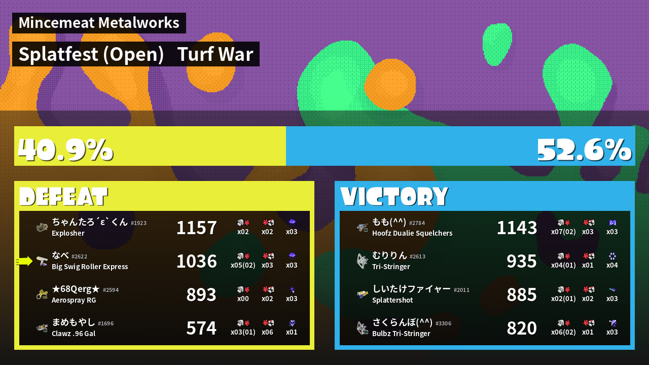 | Medals | #1 Overall Splatter #1 Popular Target #1 Enemy-Base Inker |
