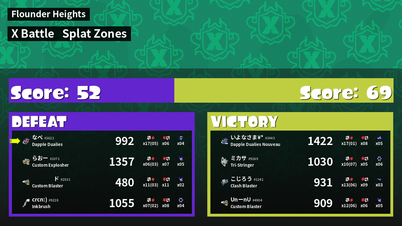 | Medals | #1 Overall Splatter #1 Splat Zone Guard #1 Popular Target | ||