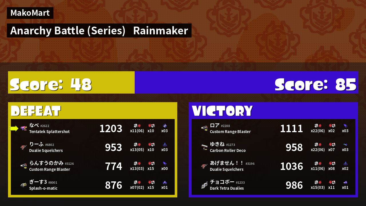 | Mode | Rainmaker - Anarchy Battle (Series) | ||