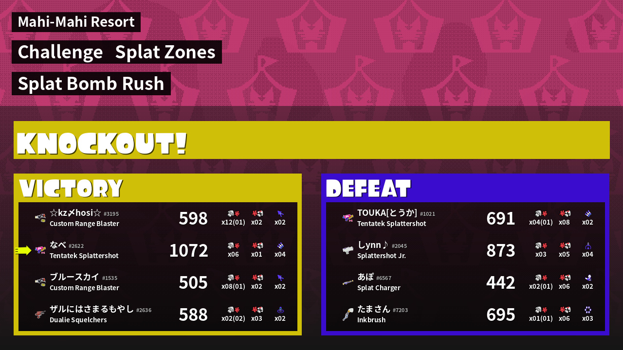 | Challenge | Splat Bomb Rush Let the Splat Bombs fly in this free-for-all! | ||