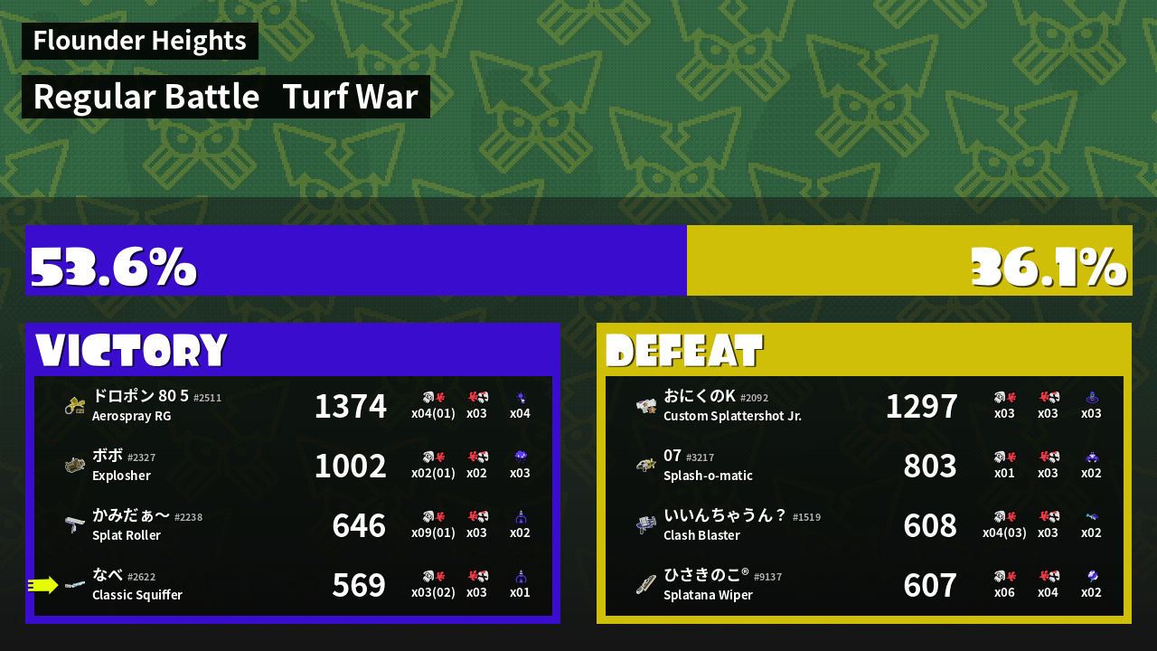 | Mode | Turf War - Regular Battle | ||