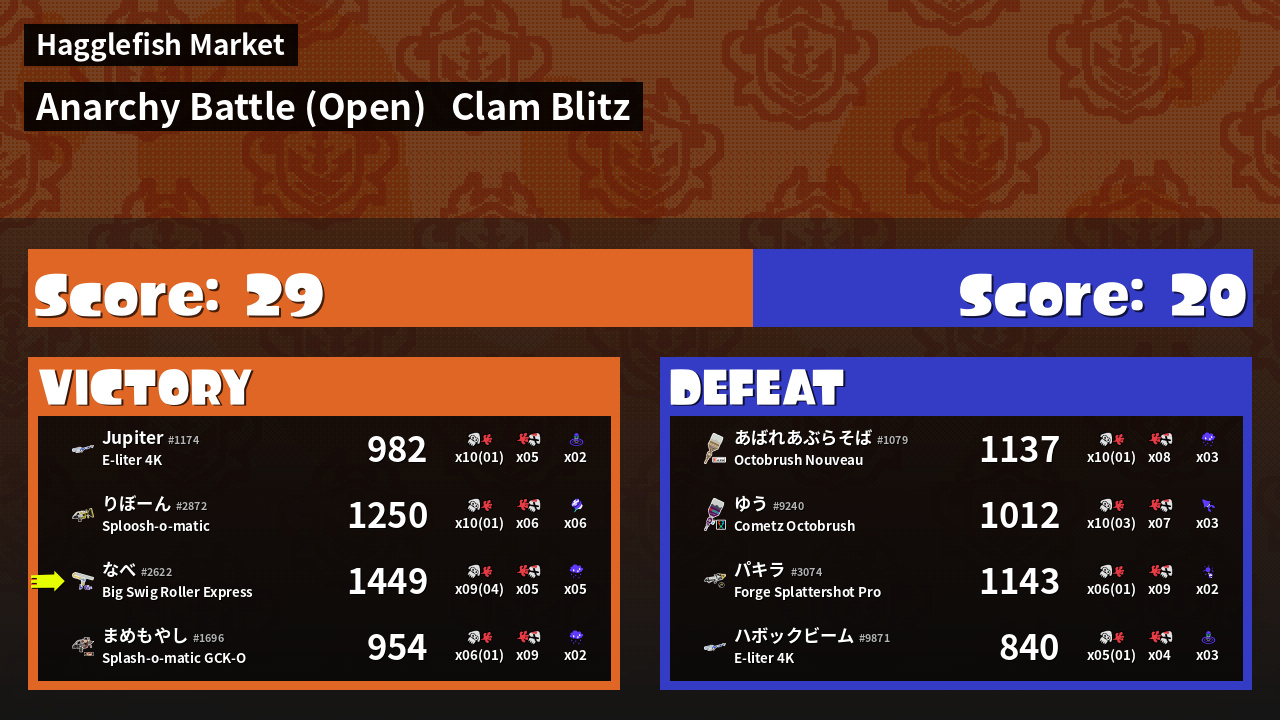 | Mode | Clam Blitz - Anarchy Battle (Open) |