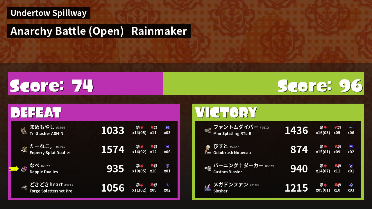 | Mode | Rainmaker - Anarchy Battle (Open) |