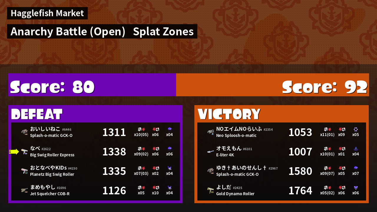 | Mode | Splat Zones - Anarchy Battle (Open) |
