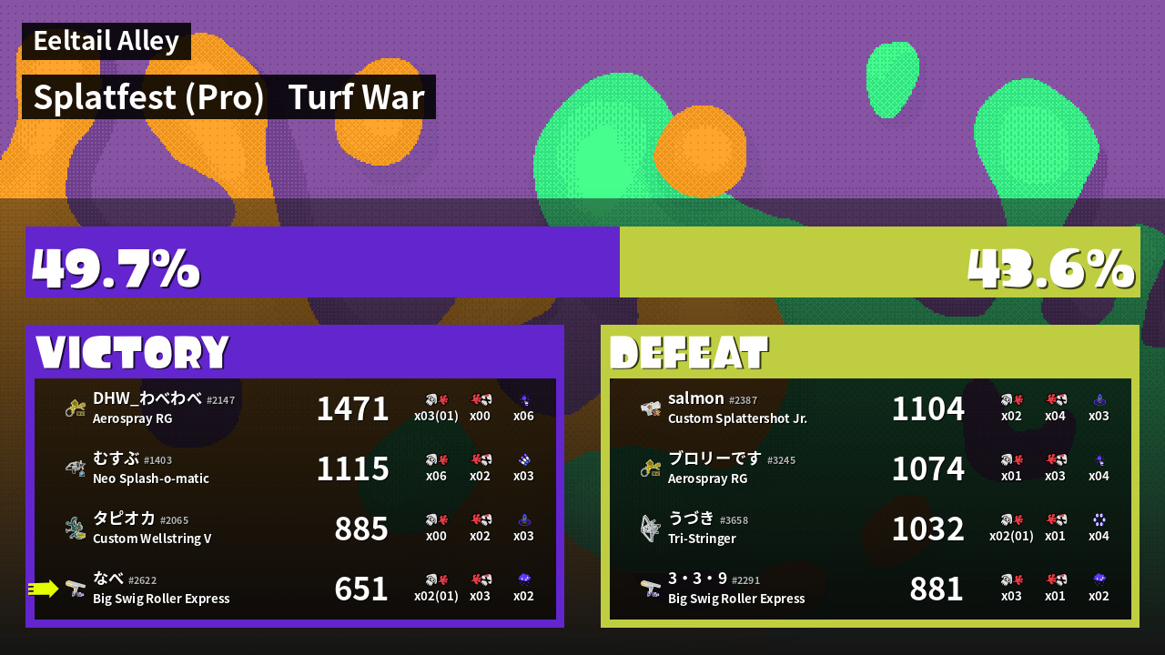 | Mode | Turf War - Splatfest (Pro) | ||