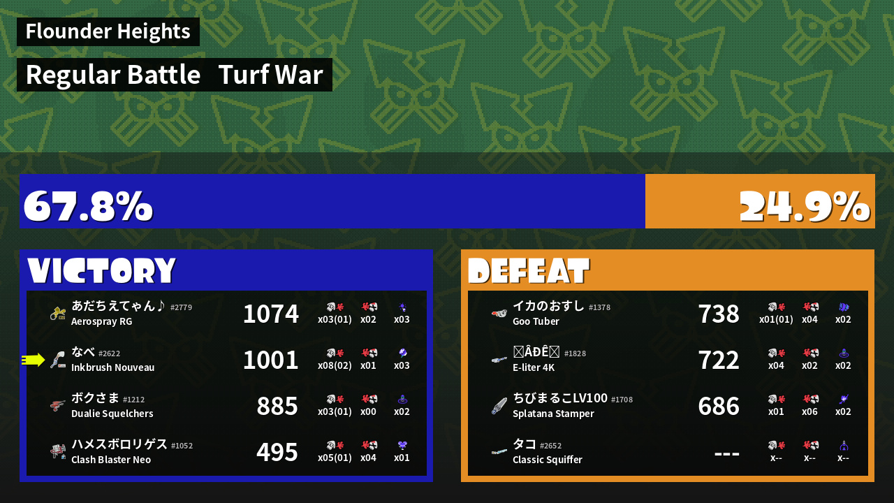 | Mode | Turf War - Regular Battle | ||