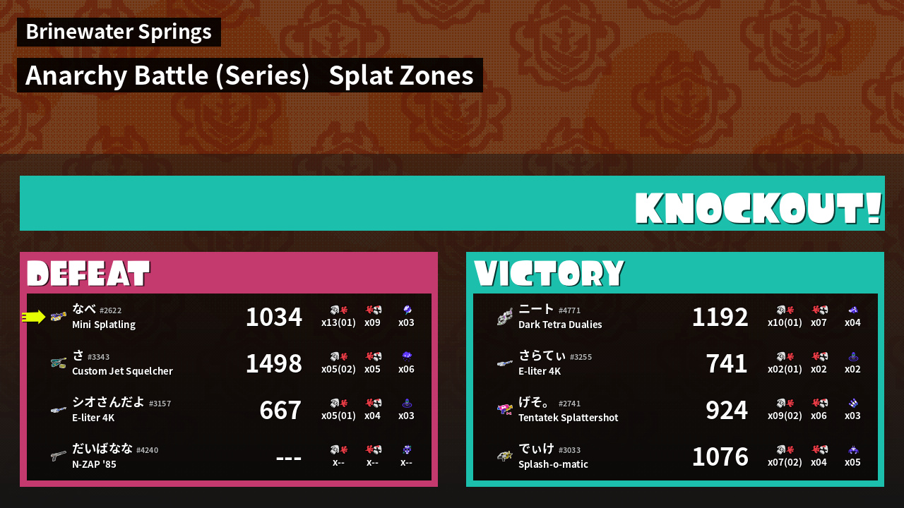 | Mode | Splat Zones - Anarchy Battle (Series) | ||