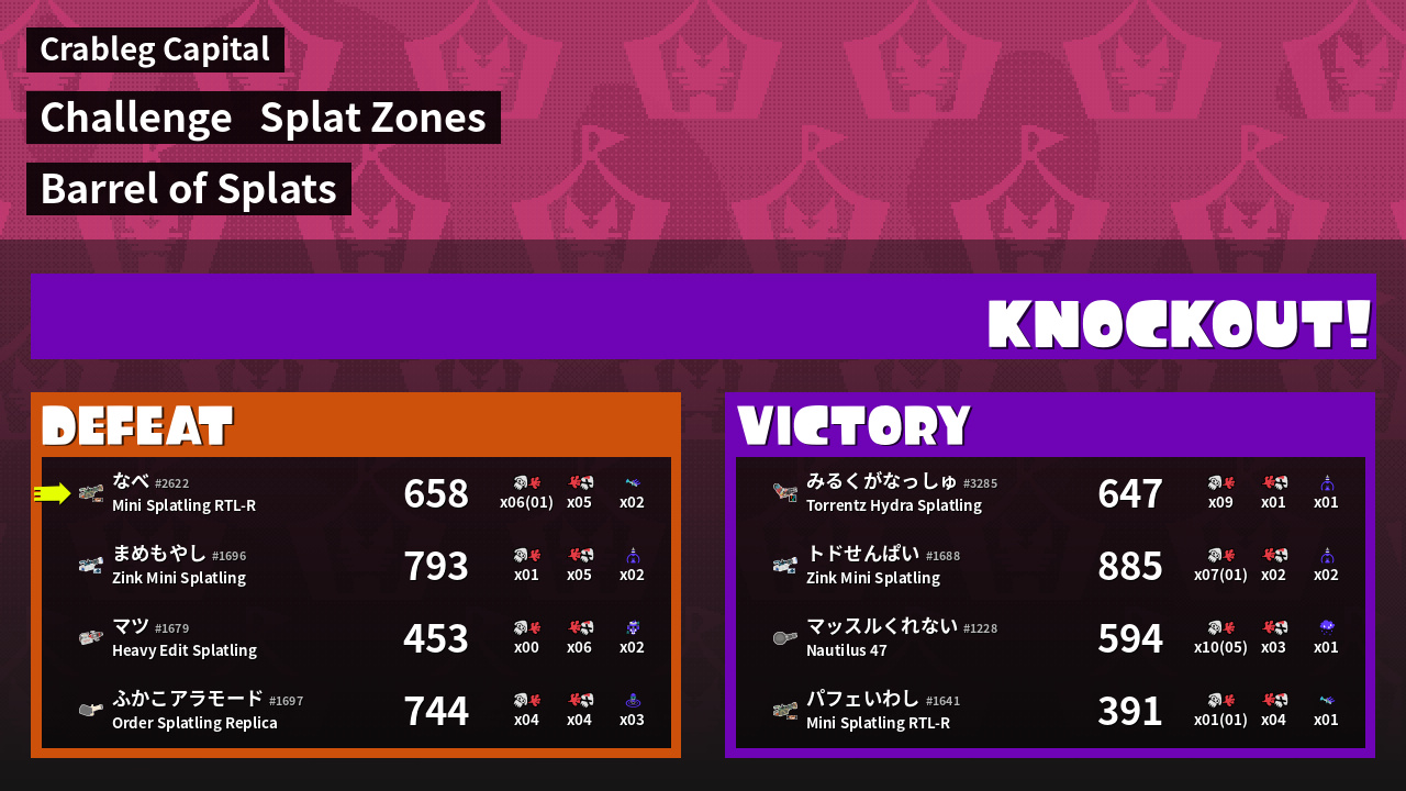| Challenge | Barrel of Splats Muster as much firepower as you can<br />in this battle of the splatlings! | ||