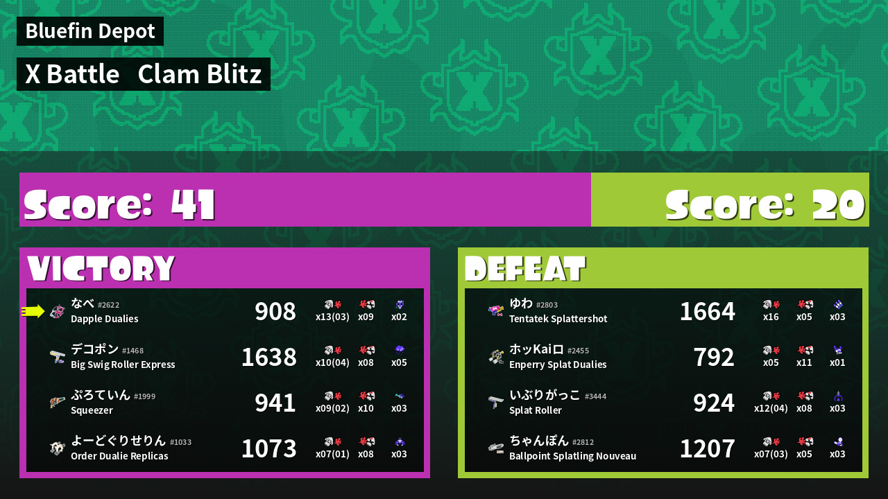| Medals | #1 Overall Splatter #1 Clam Carrier #1 Enemy Splatter | ||