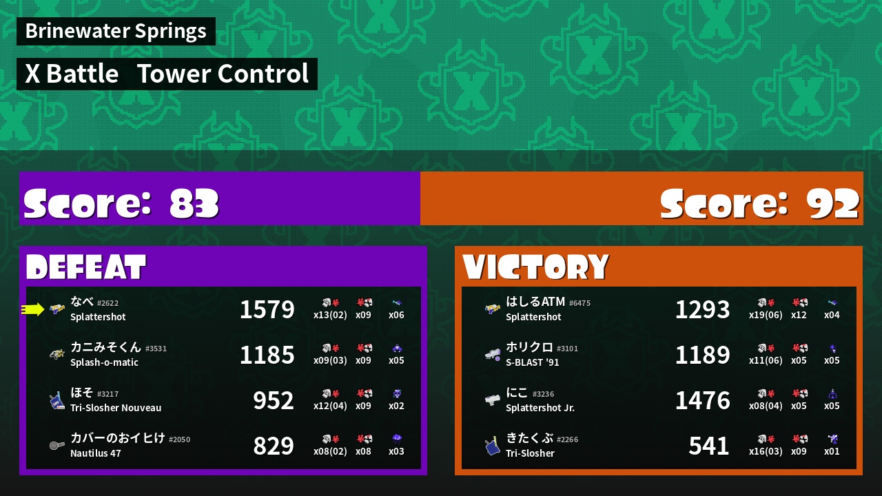 | Medals | #1 Overall Splatter #1 Turf Inker #1 Enemy Splatter | ||