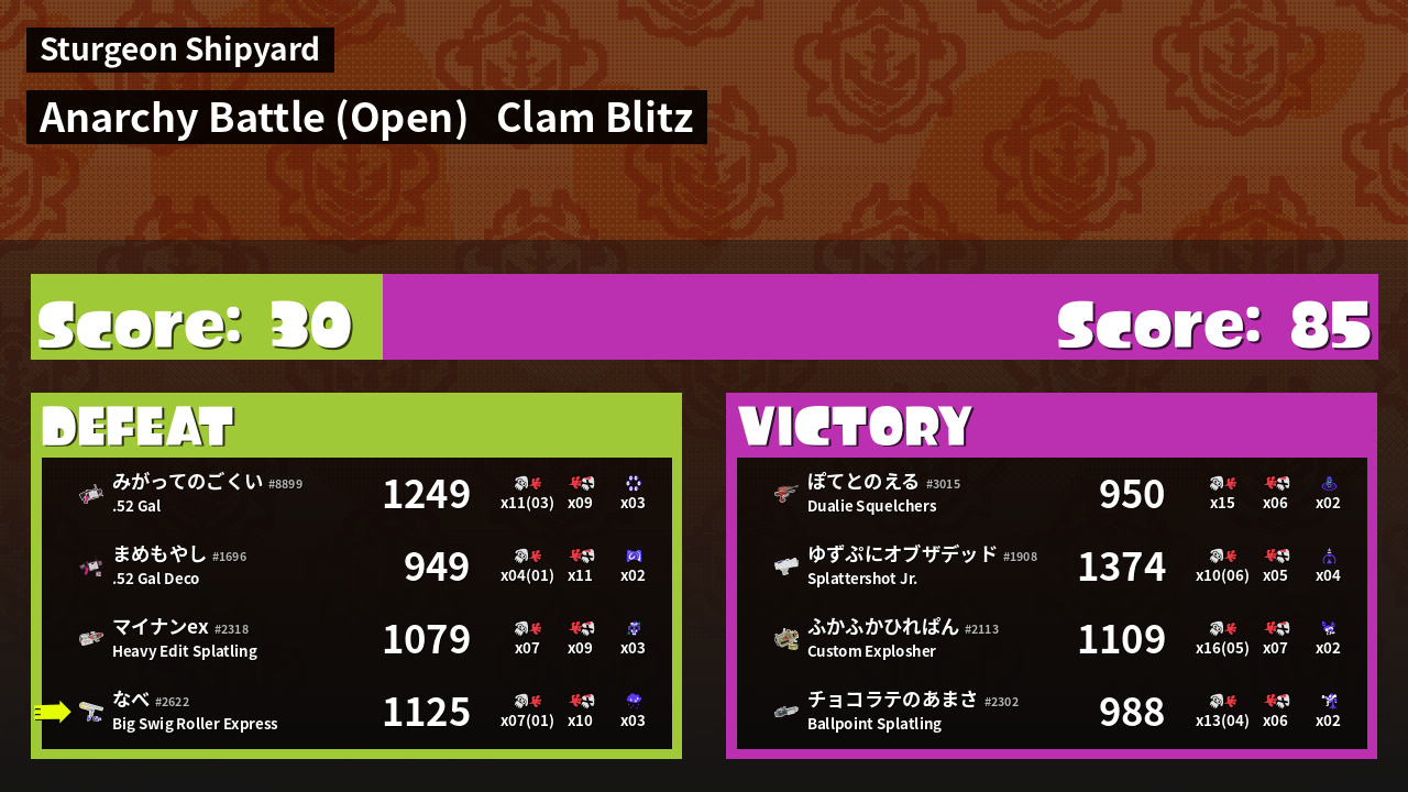 | Mode | Clam Blitz - Anarchy Battle (Open) | ||