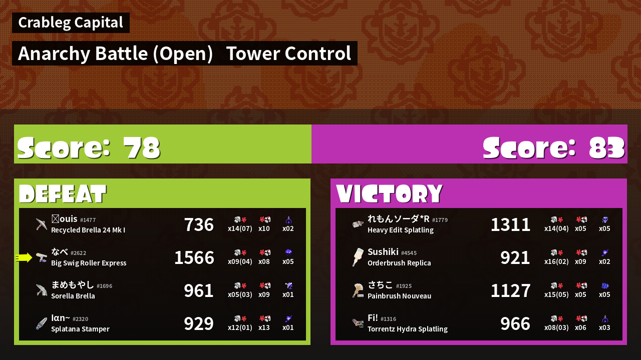 | Mode | Tower Control - Anarchy Battle (Open) |