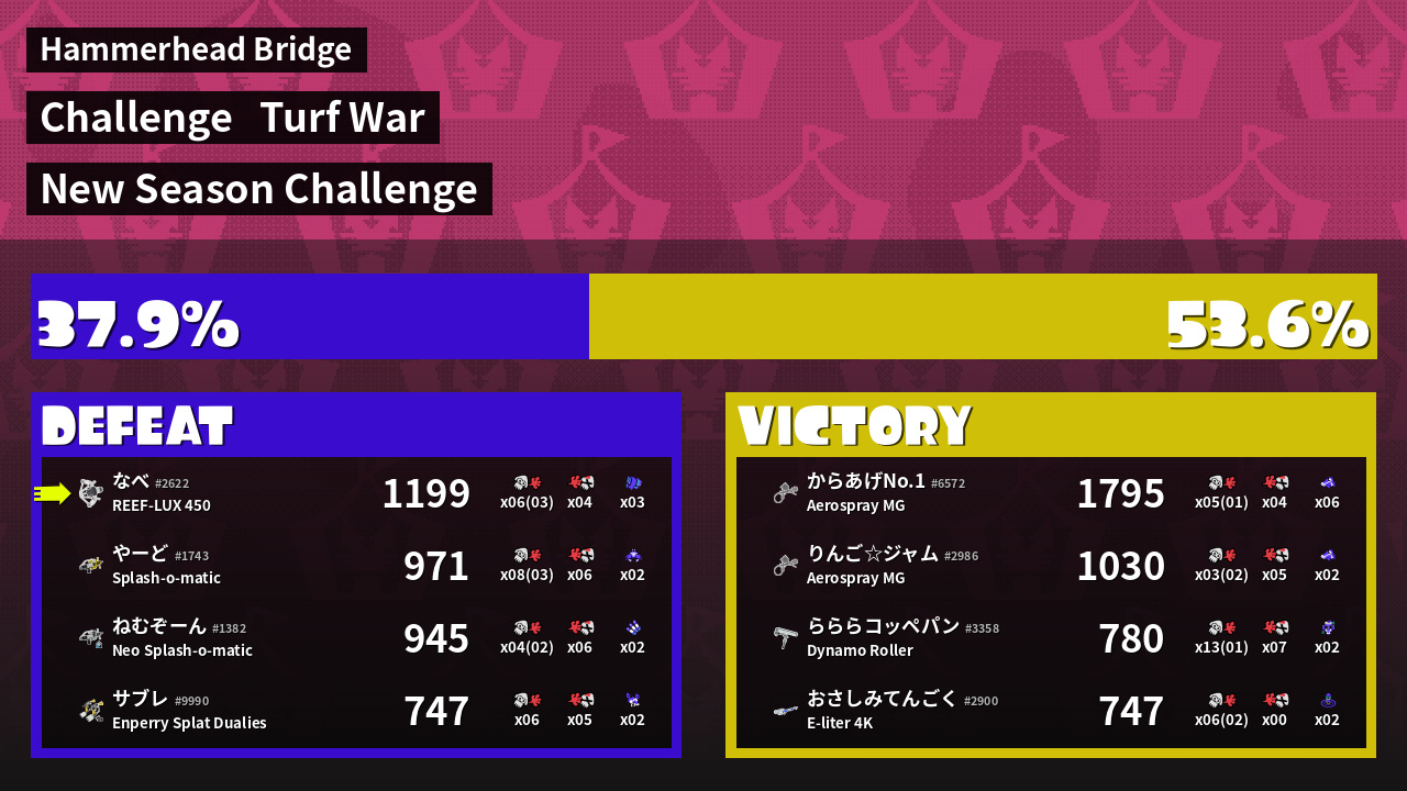| Mode | Turf War - Challenge | ||