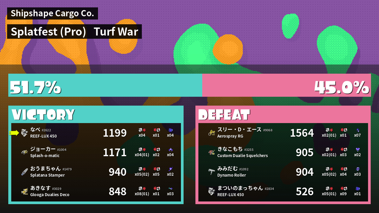 | Mode | Turf War - Splatfest (Pro) | ||