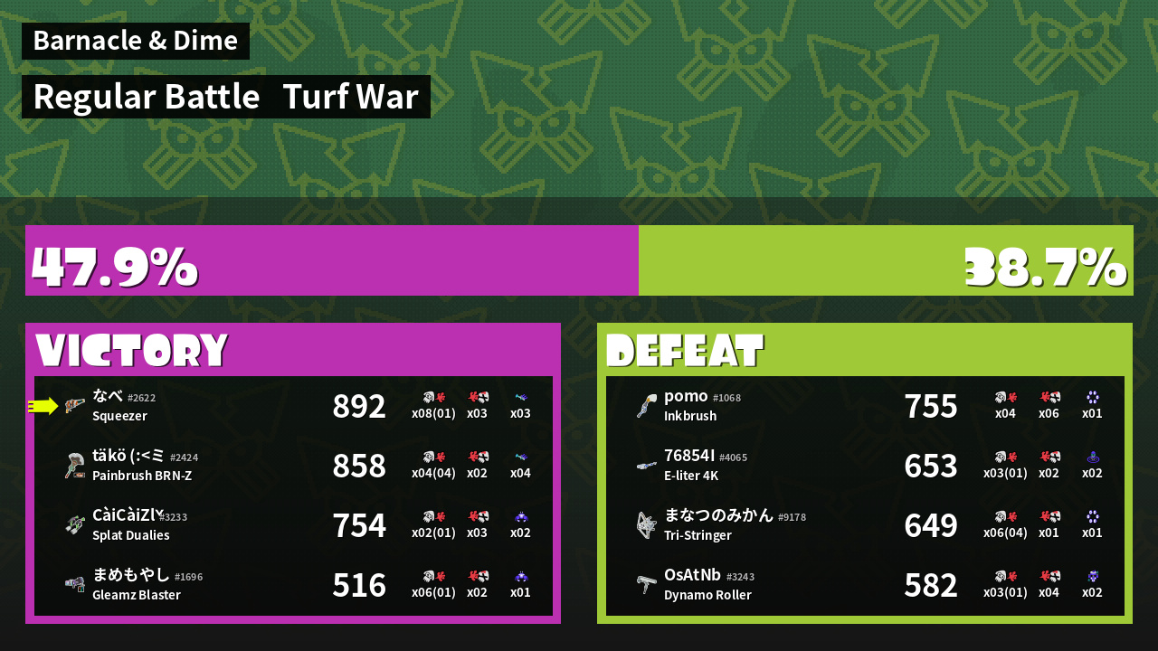 | Mode | Turf War - Regular Battle |