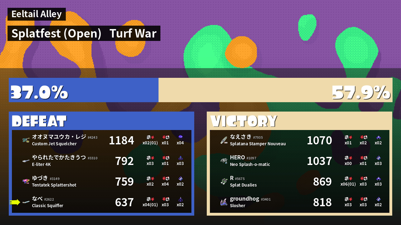 | Medals | #1 Overall Splatter #1 Enemy Splatter #1 Splat Assister | ||
