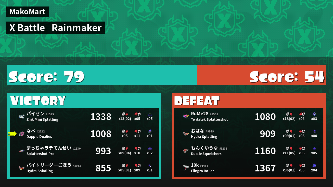 | Mode | Rainmaker - X Battle | ||