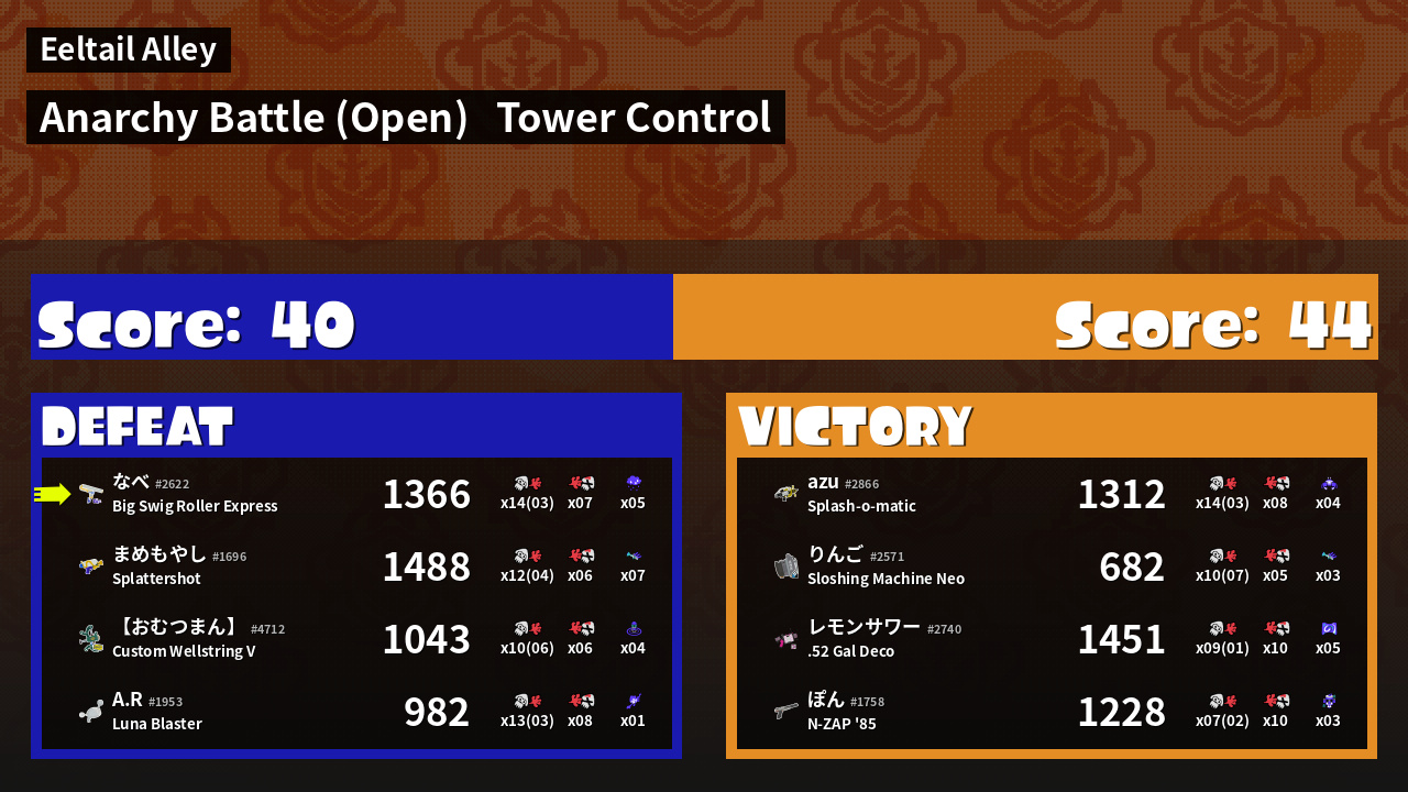 | Mode | Tower Control - Anarchy Battle (Open) |
