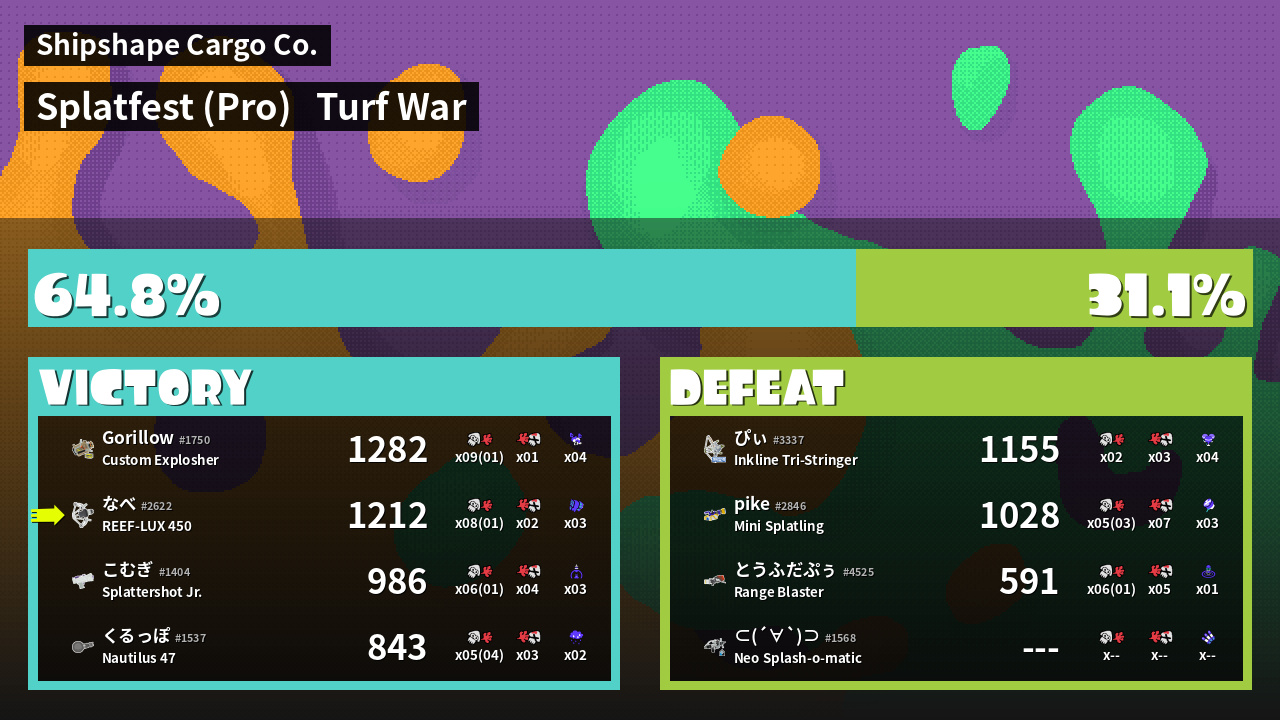| Mode | Turf War - Splatfest (Pro) | ||