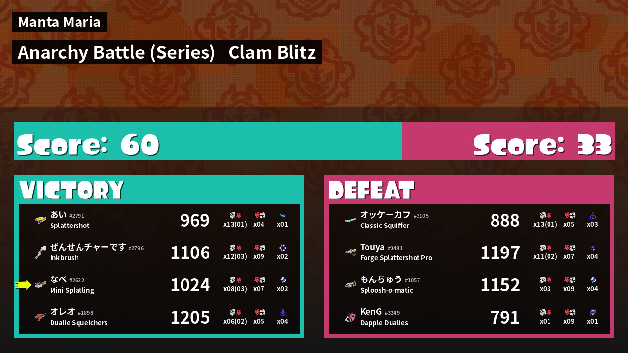 | Mode | Clam Blitz - Anarchy Battle (Series) | ||